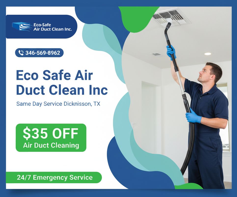 Take advantage of limited-time savings designed to help Dickinson homeowners enjoy cleaner air without stretching their budget. Eco Safe Air Duct Cleaning Dickinson TX offers straightforward deals with honest pricing, no surprises, and the same reliable service our customers trust every day.